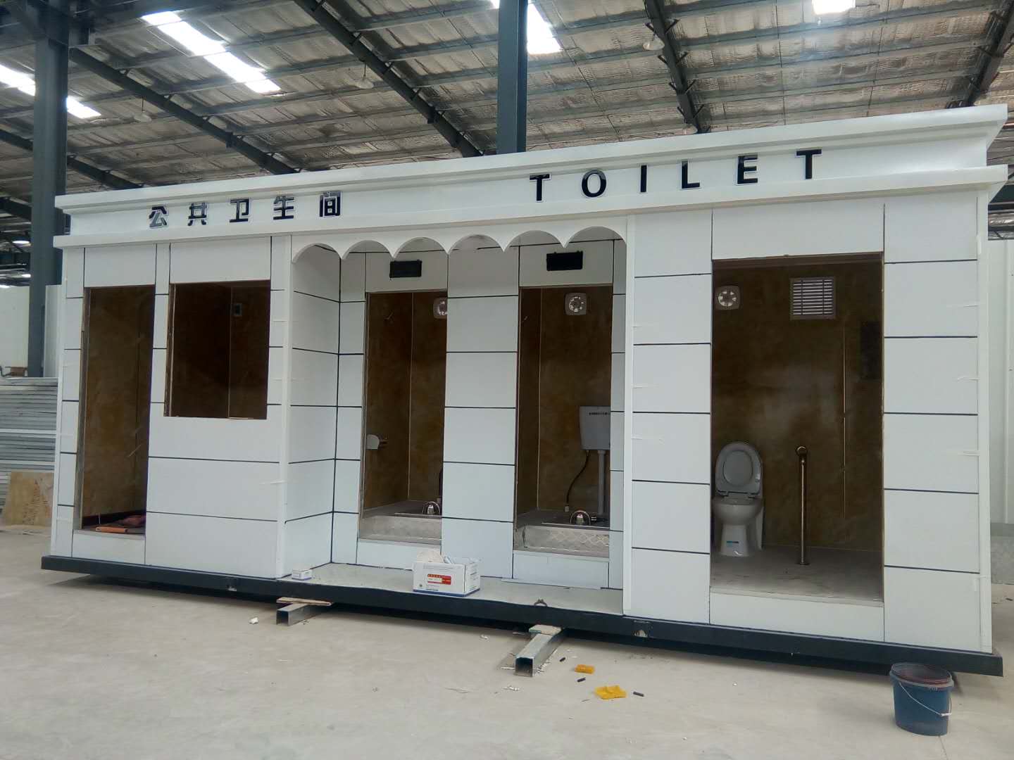 移動廁所簡介及制作方法:1、房體結(jié)構(gòu): 采用輕鋼龍骨結(jié)構(gòu),鋼材全部使用標(biāo)準(zhǔn)鍍鋅鋼材。根據(jù)房體的大小特選用國標(biāo)方管(50-100)焊接而成。鍍鋅管厚度為2.8mm,方管經(jīng)過除銹后進(jìn)行鍍鋅、防腐處理,這樣就會延長廁所使用壽命.2、墻體: 墻板采用金屬雕花板,金屬雕花板是保溫、隔熱、環(huán)保、阻燃、防雨、防凍、隔音、抗震等...