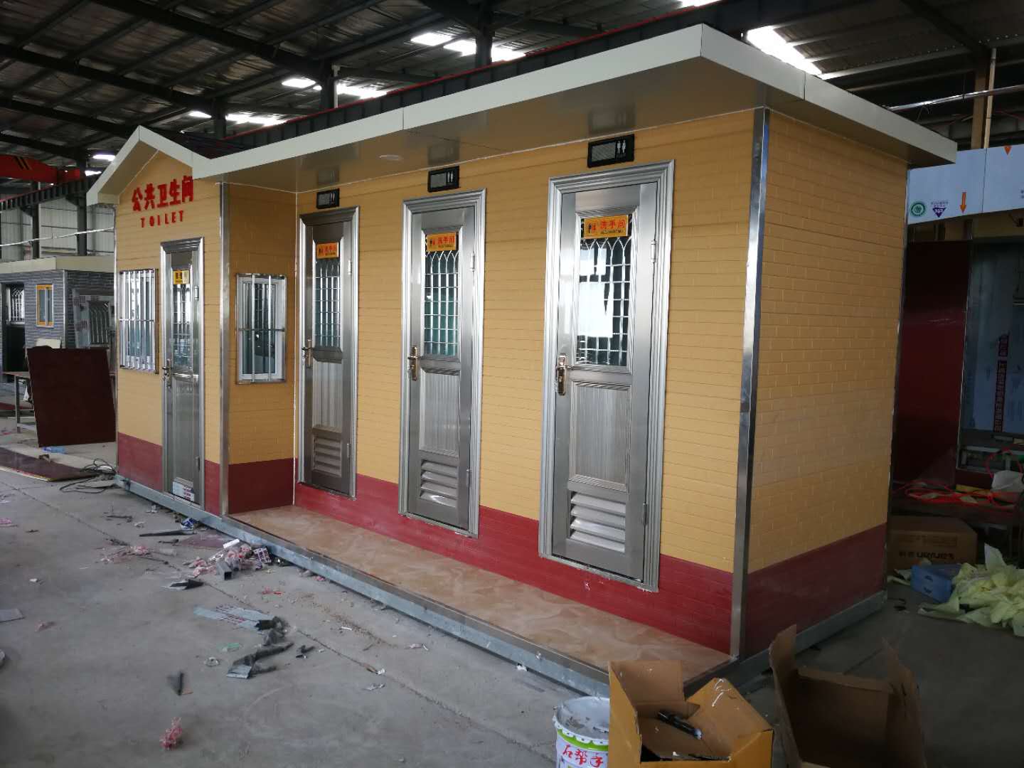 1、房體結(jié)構(gòu): 采用輕鋼龍骨結(jié)構(gòu),鋼材全部使用國家標(biāo)準(zhǔn)鍍鋅鋼材。根據(jù)房體的大小特選用國標(biāo)方管(50-100)焊接而成。鍍鋅管厚度為2.8mm,方管經(jīng)過徹底除銹后進(jìn)行鍍鋅、防腐處理,處理后的結(jié)構(gòu)使用壽命均在20年以上。這樣就會延長廁所使用壽命,使整座廁所的穩(wěn)固性更強(qiáng)、更加結(jié)實(shí)耐用。