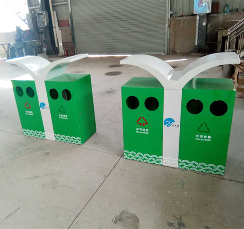 蝴蝶型分類環(huán)保垃圾桶果皮箱采用SMC復(fù)合材料,3500噸壓機模壓成型,內(nèi)外光潔度一致。